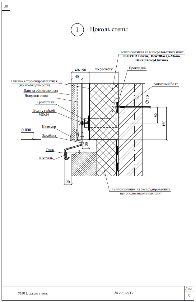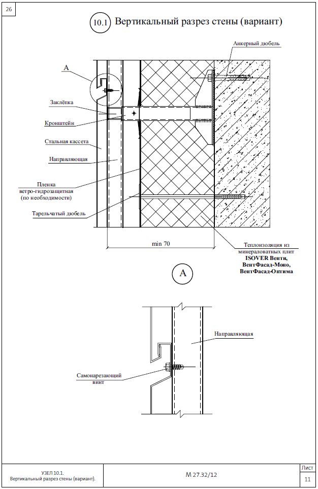 - 4.1 НАВЕСНОЙ ВЕНТИЛИРУЕМЫЙ ФАСАД (ОДНОСЛОЙНОЕ РЕШЕНИЕ)