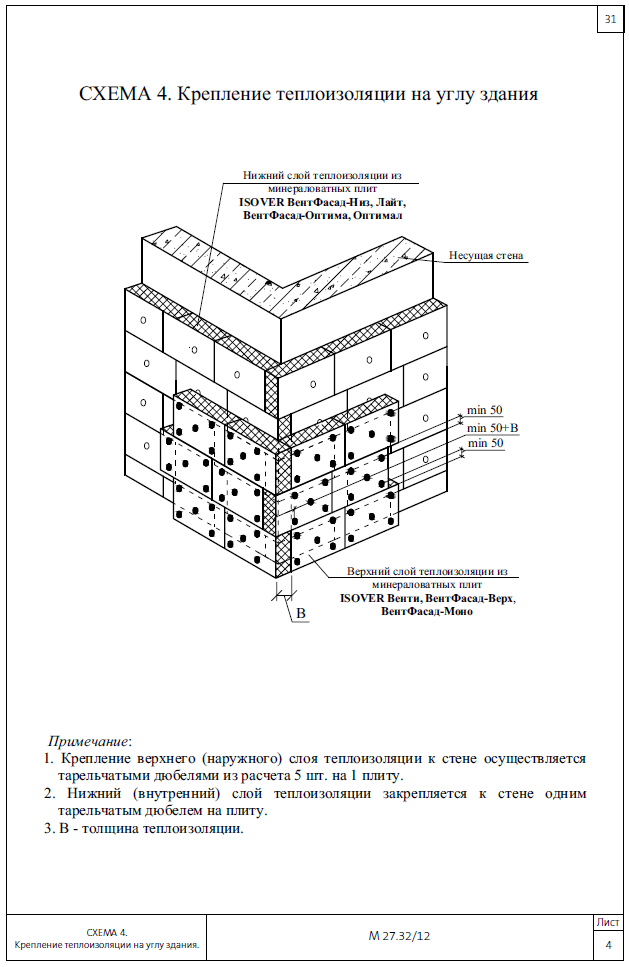 3.2 В системах НВФ применяется однослойный или двухслойный вариант утепления. Выбор варианта делается на стадии проектирования. Расчет теплоизоляции выполняется по СП 50.13330.