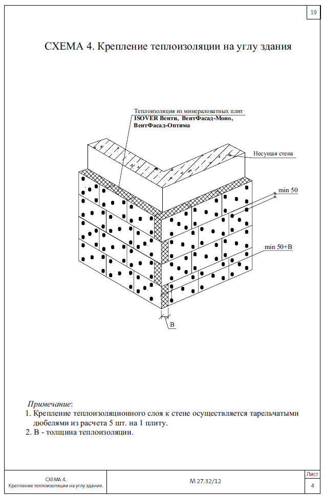 3.13 Плиты крепятся тарельчатыми дюбелями. Минимальное расстояние от центра отверстия до торца плиты – 50 мм.