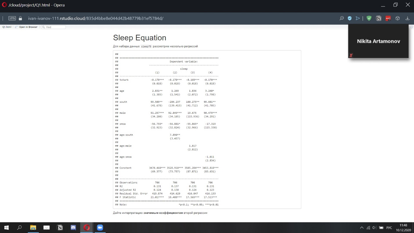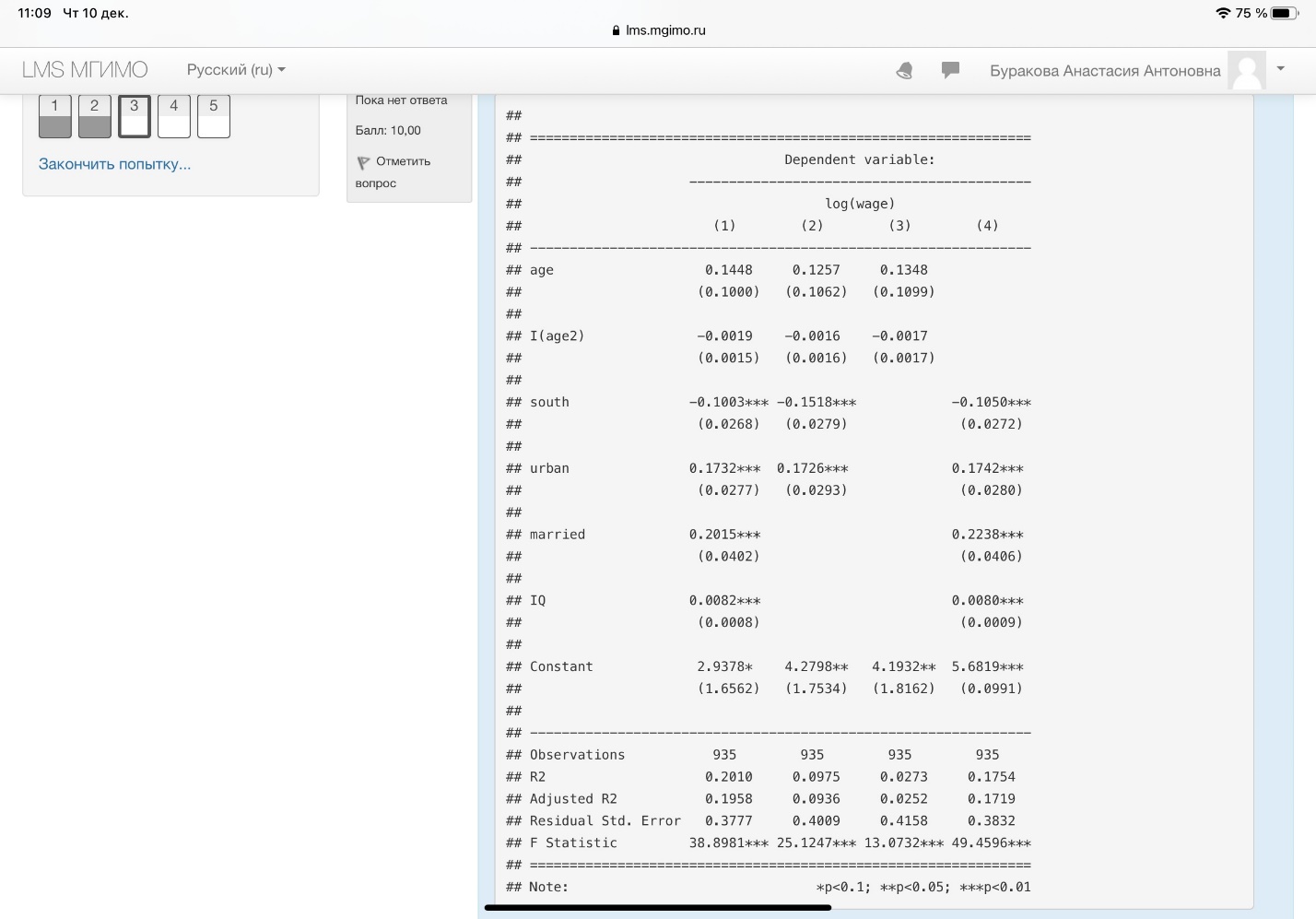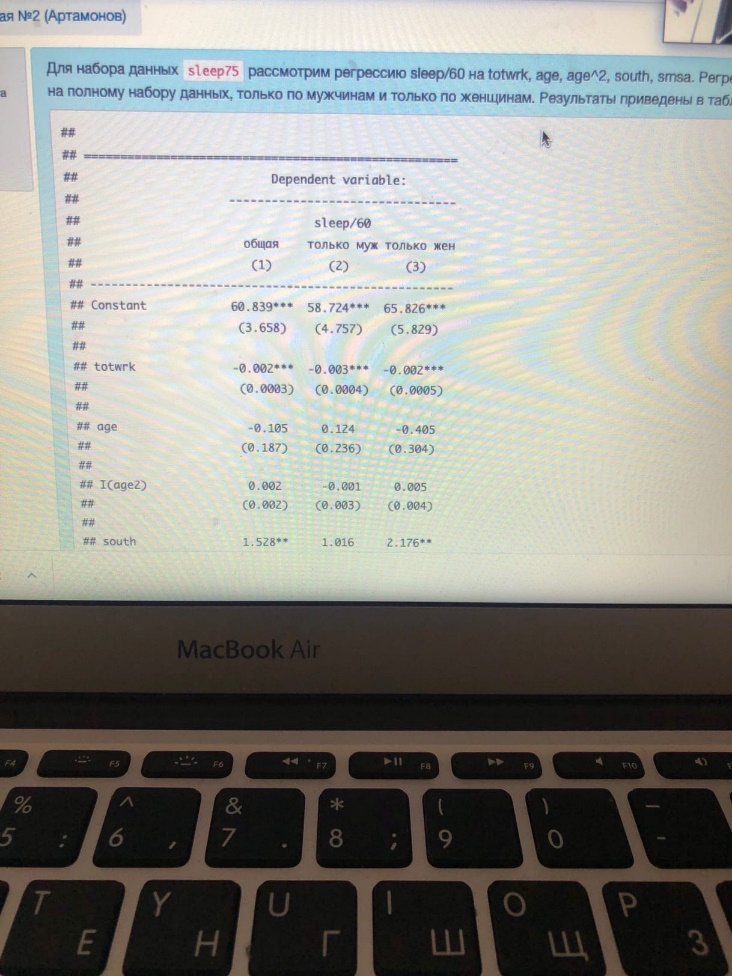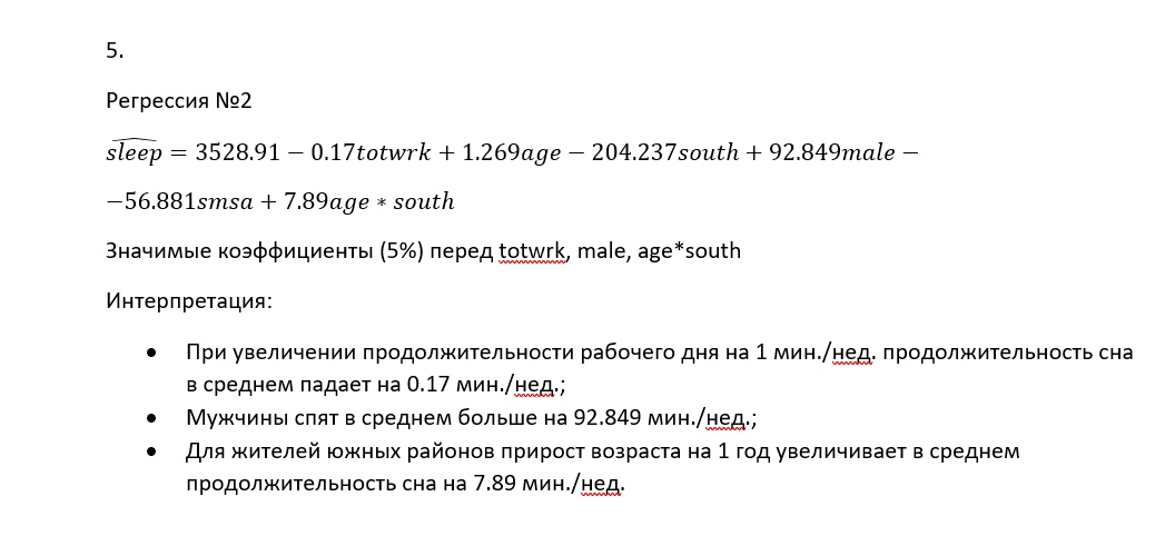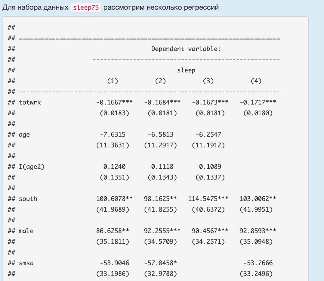 Для набора данных sleep75 рассмотрим несколько регрессий: