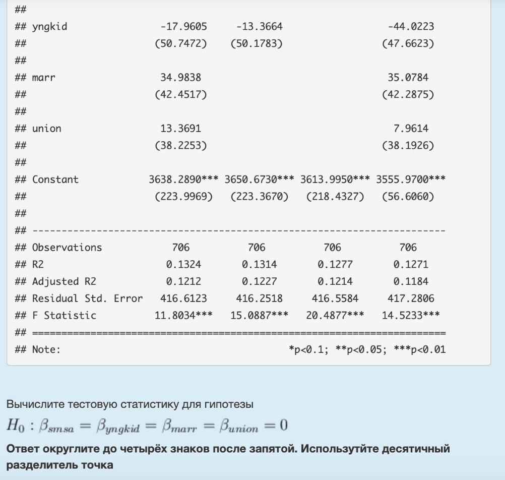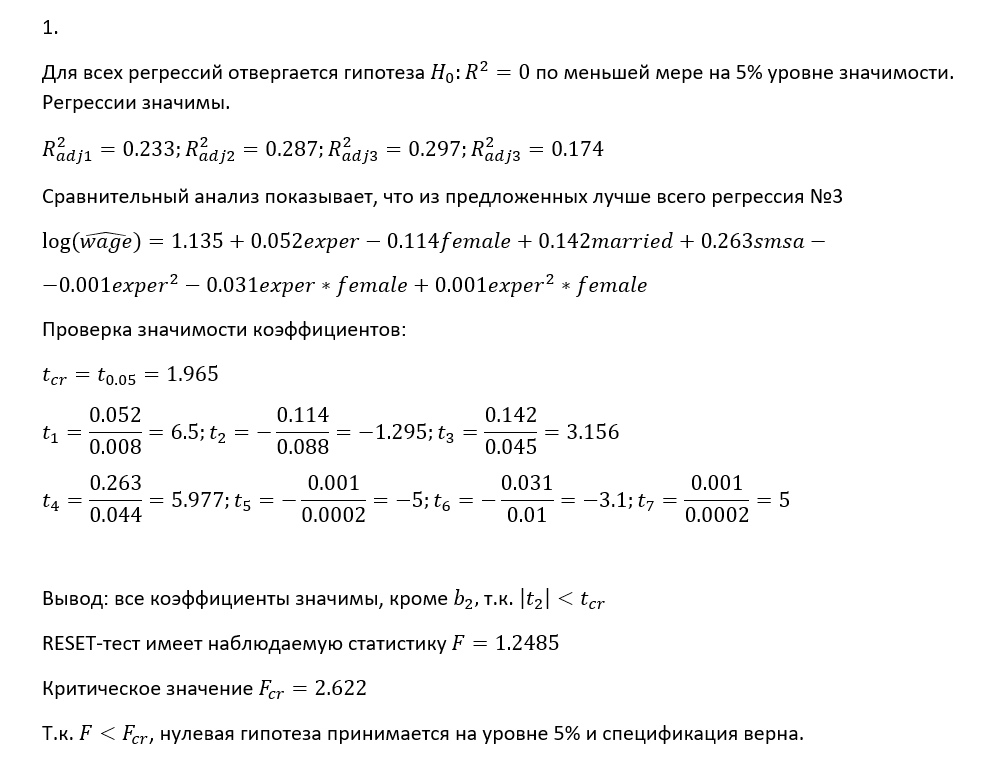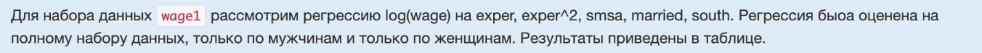 Для набора данных wage1 рассмотрим несколько регрессий: