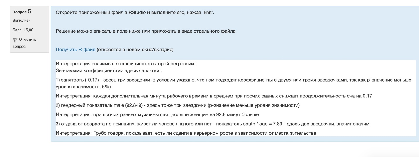 Дайте интерпретацию значимым коэффициентам второй регрессии.
