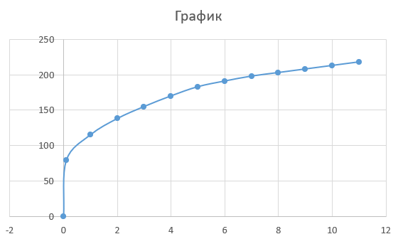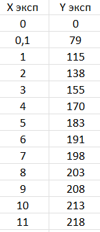 Определяем координаты точек графика и записываем их в два столбца.