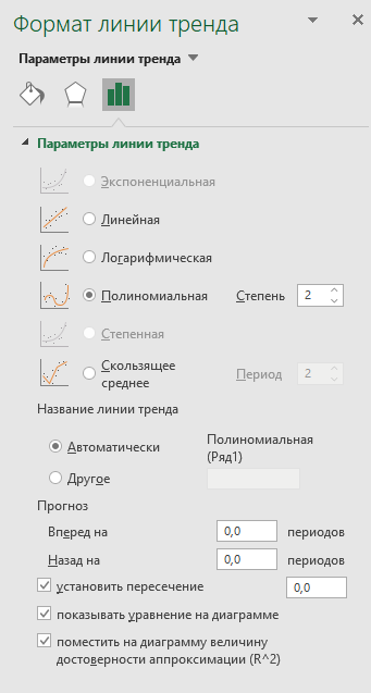 Рис. 4. Параметры линии тренда