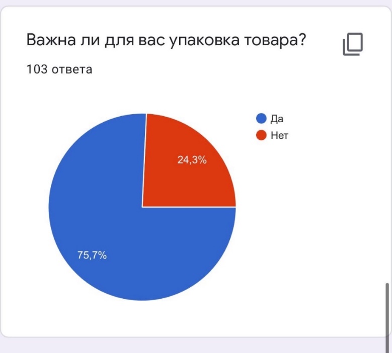 | Важна ли для вас упаковка товара? | Важна: 75.7%; Не важна: 24,3% |