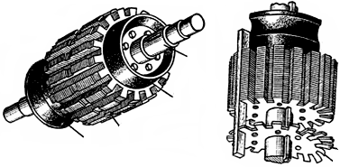 Роторы синхронной явнополюсной и неявнополюсной машин.