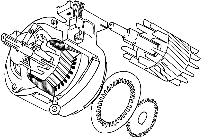 Общий вид асинхронного двигателя. Состоит из статора и ротора.