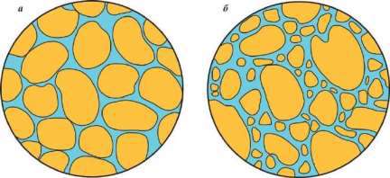 Факторы, влияющие на пористость: укладка зерен, отсортированность, форма зерен.