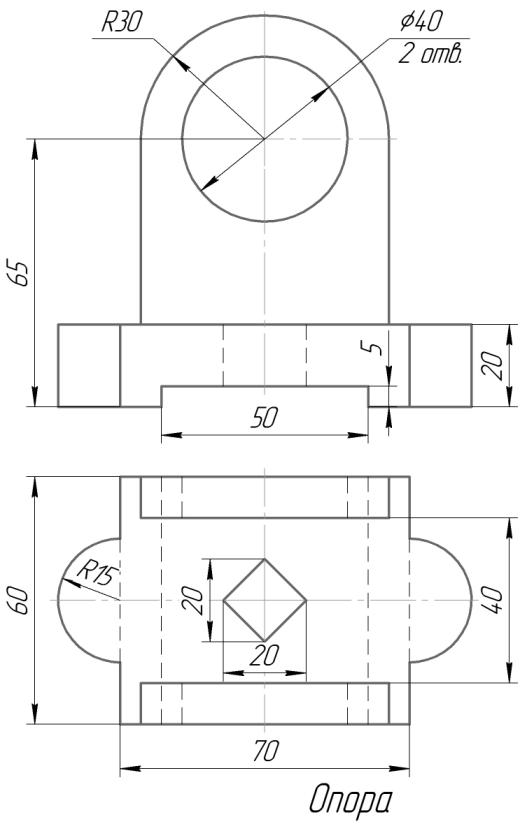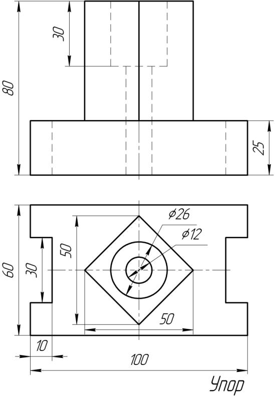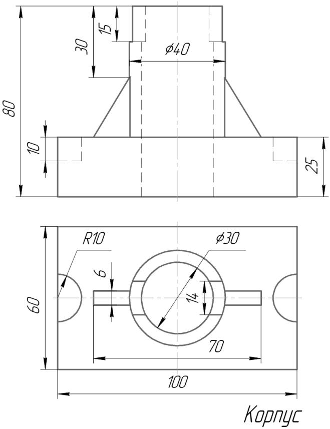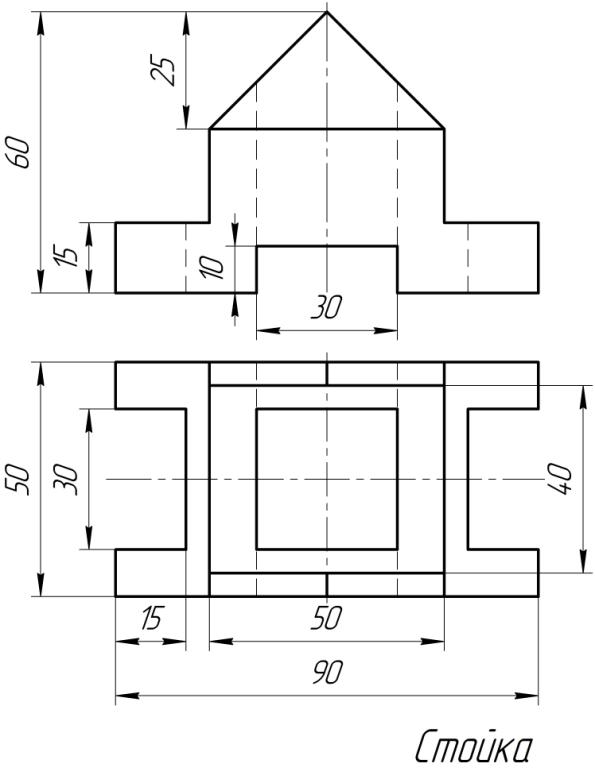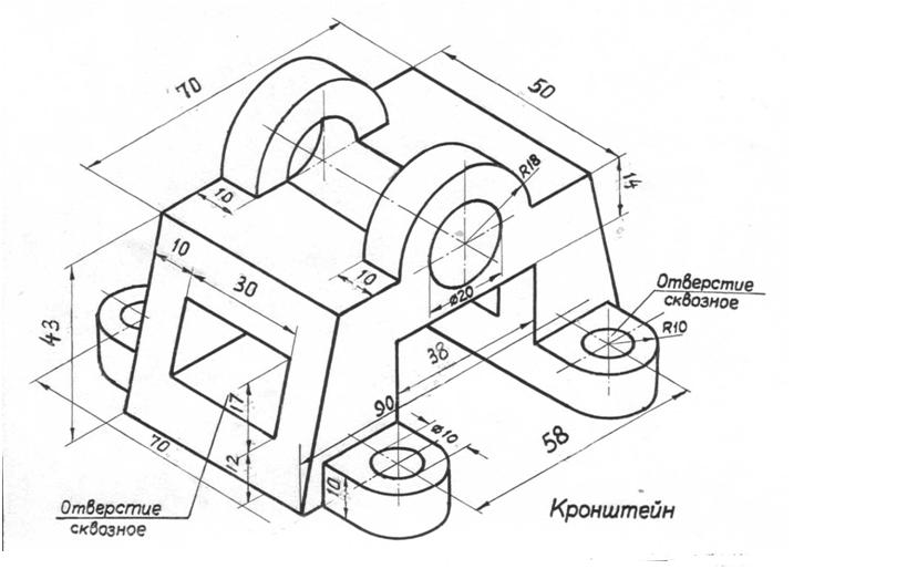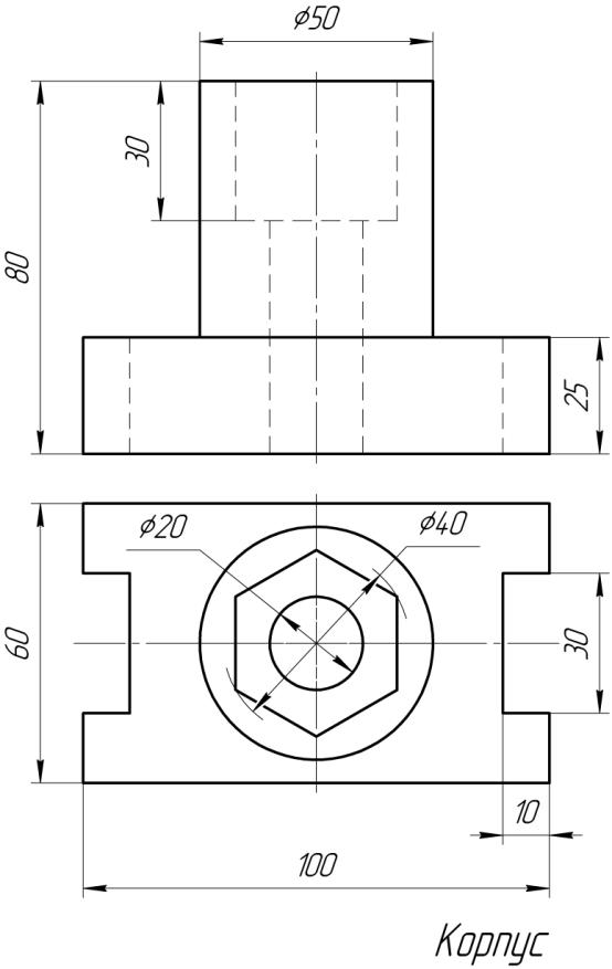 Цель: Научиться строить виды и разрезы простой детали по ее наглядному изображению.