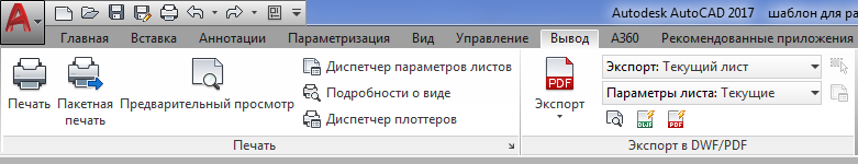 - Вывод – на данной вкладке сосредоточены инструменты вывода на печать и экспорта