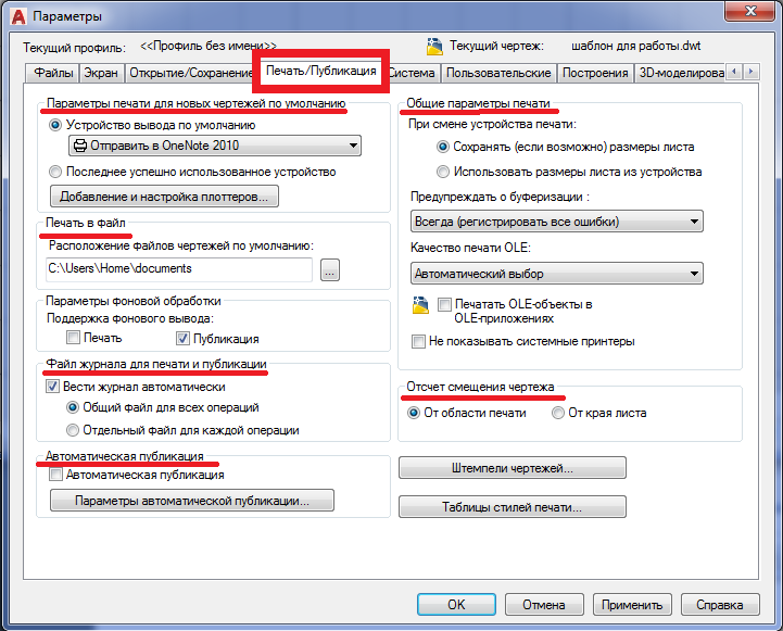 - Вкладка «Печать/Публикация». На этой вкладке возможно осуществлять настройку печати