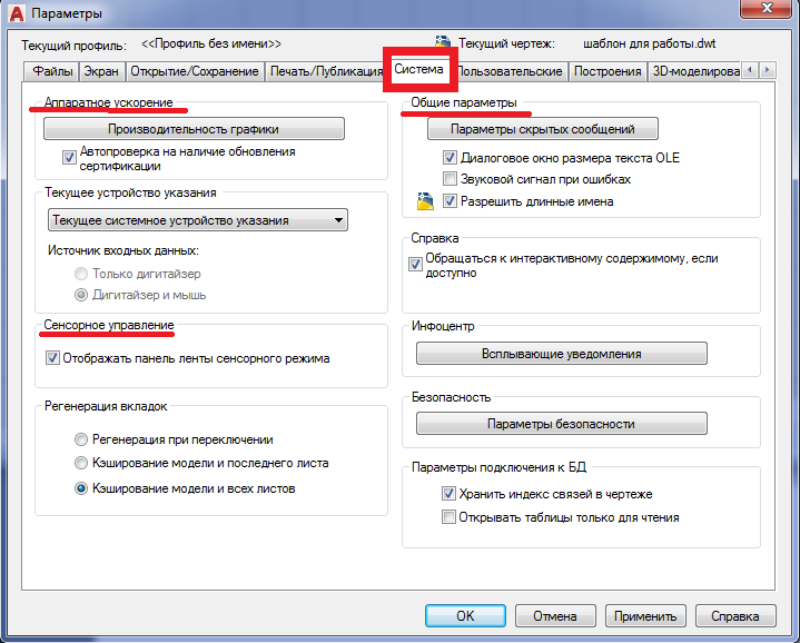 - 1.2. ОБЩИЕ НАСТРОЙКИ AUTOCAD. ОКНО «ПАРАМЕТРЫ»