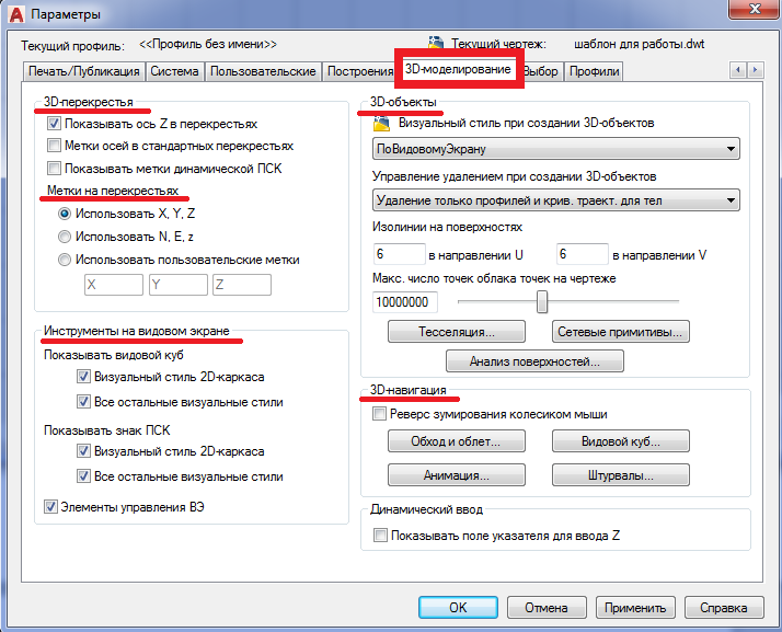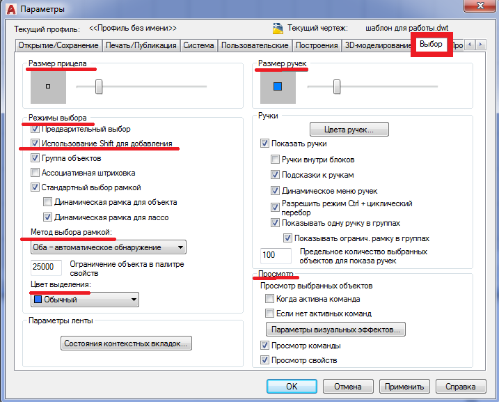 1.2. ОБЩИЕ НАСТРОЙКИ AUTOCAD. ОКНО «ПАРАМЕТРЫ»