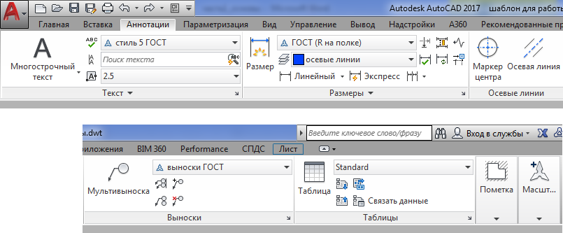 - Аннотации – эта вкладка предназначена для определения параметров и нанесения размеров, выносок, текстовых надписей, выполнения таблиц