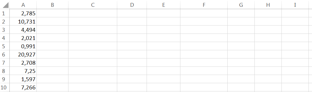 Для расчета основных статистических характеристик выборки исходные данные вводятся так же, как и в предыдущем случае – в столбец на листе Microsoft Excel.