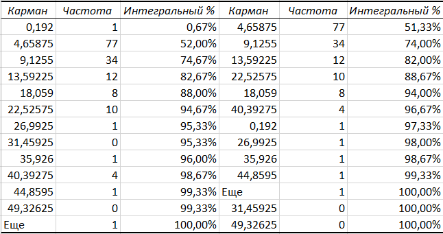 Кроме таблицы, можно вывести данные с отсортированными значениями, кумулятивную кривую (интегральный процент) и график. Для этого нужно установить соответствующие флажки.