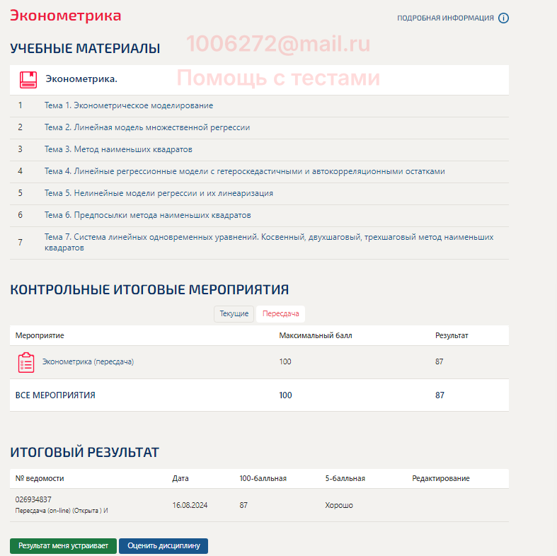 Главная » Ответы на тесты » Примеры работ » lms.mosap.ru Эконометрика lms.mosap.ru Эконометрика 6 семестр Эконометрика Итоговый тест https://lms.mosap.ru/
