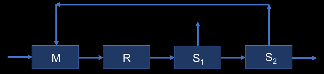 Поток на выходе из реактора содержит все компоненты. Бензол отделяется, а толуол отправляется на рецикл. В первом разделителе поток бензола содержит 99.5% бензола поступившего в него, 0.1% толуола и не содержит ксилола. Во втором разделителе поток толуола, отправляющийся на рецикл, содержит весь бензол, 99.5% толуола и 0.1% ксилола, поступивших в разделитель. Рассчитайте материальный баланс процесса. Чему равна конверсия толуола в ксилол в этом процессе?