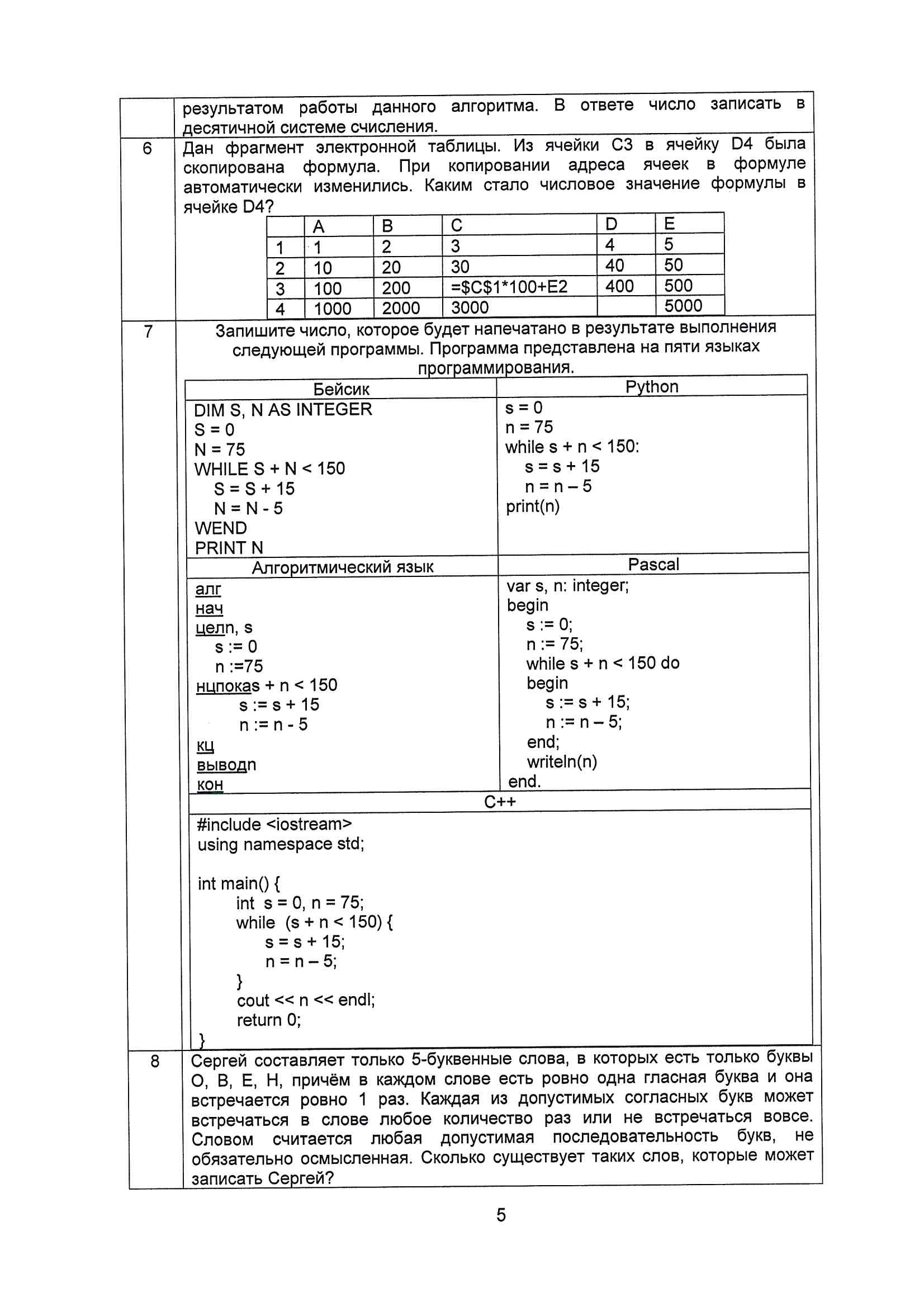 5. Задание на выполнение работы