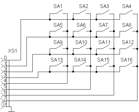 Матричная архитектура подразумевает группировку кнопок, при которой один из контактов подключается параллельно контактам кнопок, расположенных в одной строке, а второй контакт подключается параллельно контактам кнопок, расположенных в одном столбце. [IMAGE_26] [IMAGE_27]