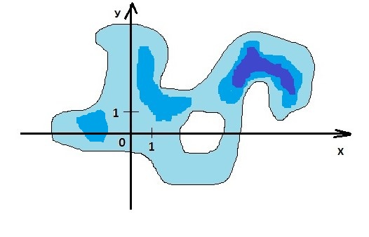 Необходимо оценить объем запасов нефти разведанной залежи, имеющей вид заштрихованной фигуры, методом Монте-Карло с точностью 80%.