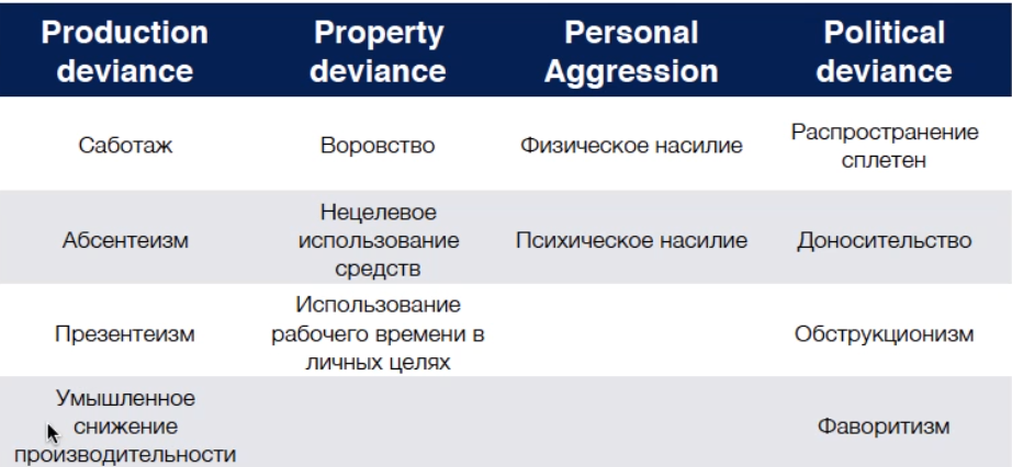 Типология контрпродуктивного поведения (антиролевое)