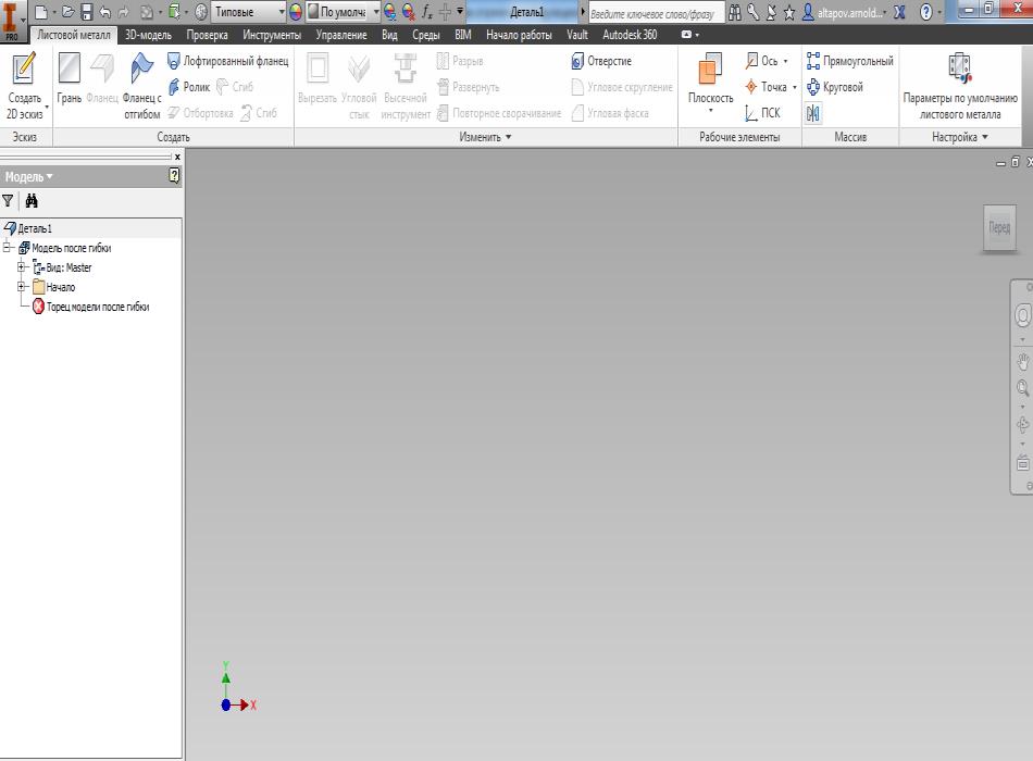 Перед Вами загрузится окно среды «Листовая деталь» (рис 3.). Окно среды содержит следующие компоненты: