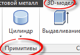 - Для создания цилиндра во вкладке «3D-модель» на панели «Примитивы» нажмем кнопку «Цилиндр» (рис.).