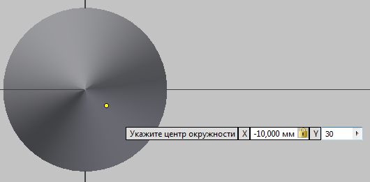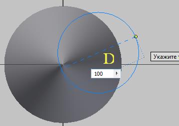 вычерчиваем окружность диаметром «D». Центр окружности привяжем к началу координат, используя размеры «А» и «Н».