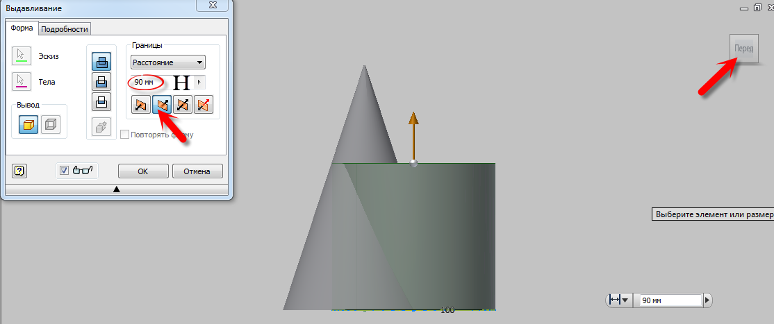 Ленточное меню шагов служит для управления шагами выполнения операций построения геометрического элемента. Ленточное меню шагов позволяет в любой момент вернуться к уже пройденному шагу.