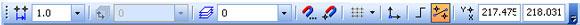 4) Панель Текущее состояние — расположены кнопки для управления курсором, его координаты. Также здесь можно установить/запретить привязки курсора, включить/выключить сетку, режим ортогонального черчения.