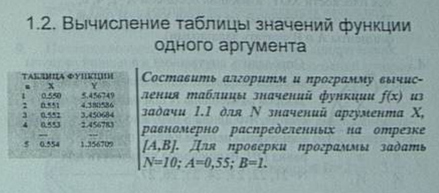 "1.6 Вычисление таблицы значений функции одногоn"