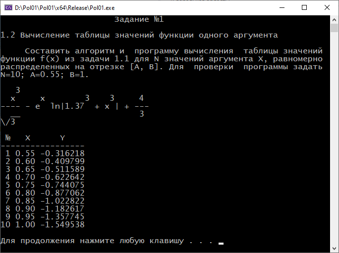 - Задание №1: Вычисление таблицы значений функции
