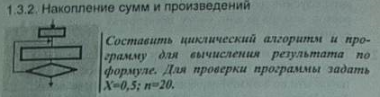 " Разработать алгоритм и программу с единственным циклом дляn"