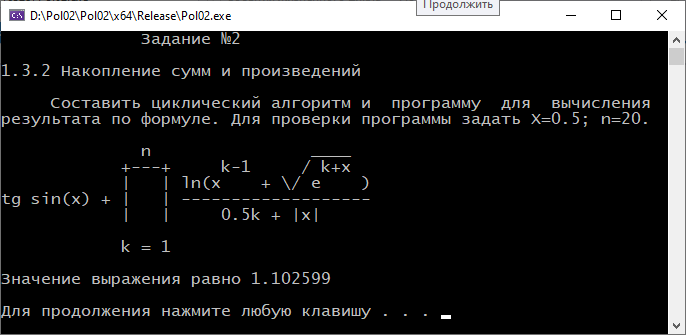 Задание №2: Накопление сумм и произведений