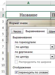 Выровняйте текст в таблице: Выделите ячейки А2, В2, С2. Нажмите правую кнопку мыши и в контекстном меню выберите Формат ячеек… Перейдите на вкладку Выравнивание, выберите: Выравнивание по горизонтали: по центру, по вертикали: по центру, поставьте галочку переносить по словам, нажмите ОК: