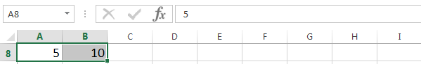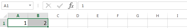 - Для создания числового ряда введите в смежные ячейки два первых числа и выделите эти ячейки:
