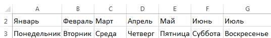 Для автозаполнения названиями месяцев или дней недели достаточно ввести название в одну ячейку и выполнить пункты 3—5.