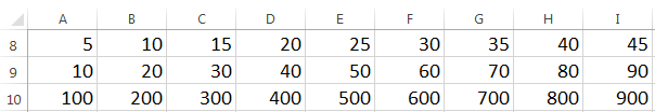 Введите числовые данные в ячейки: