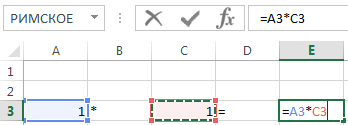 , чтобы после знака «=» отменить ввод формулы. В ячейке Е3 поставьте знак «=» и введите формулу: щелкните по ячейке А3, введите знак «*» и щелкните по ячейке С3. В ячейке Е3 и в строке формул появится формула «=А3*С3»: