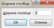 Уменьшим ширину столбцов. Выделите столбцы от А до Z, выберите Формат, Ширина столбца и установите ширину 3, нажмите ОК: