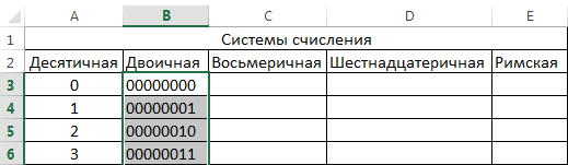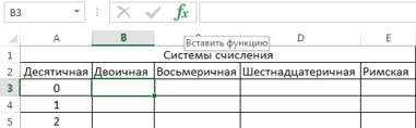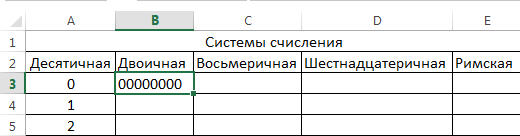 Нажмите ОК. В ячейке В3 появится число 0 в двоичной системе: