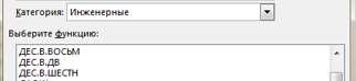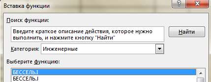 Появится окно Вставка функции. Выберите категорию: Инженерные: