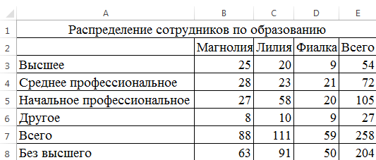 - Скопируйте формулу в Е4:Е8.