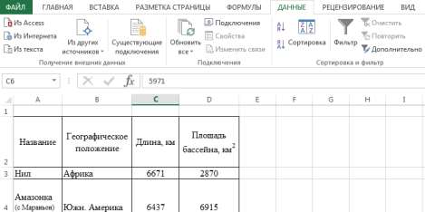 Продолжение работы с таблицей