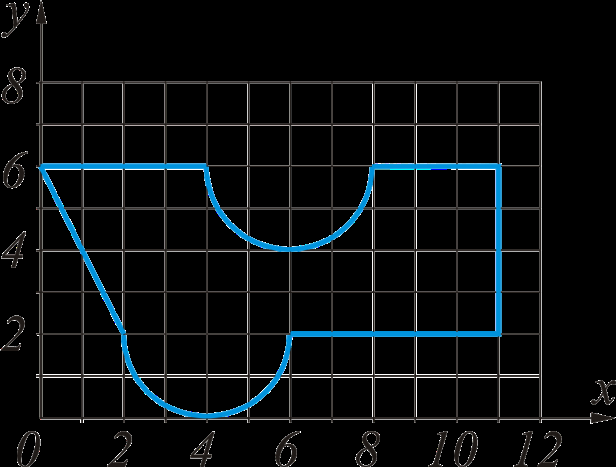Дано: Для плоской фигуры (рис. 1) необходимо определить площадь S и координаты центра тяжести фигуры xC, yC. Шкалы осей на схеме заданы в метрах. Криволинейный участок контура является дугой половины или четверти окружности.