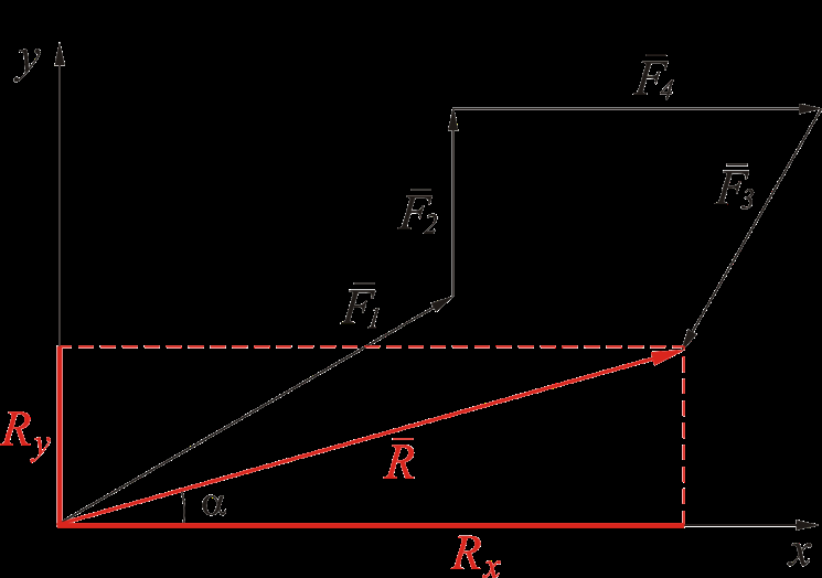 В статье представлен подробный пример решения задачи по теоретической механике. Рассматривается система из четырех сходящихся сил (F1, F2, F3, F4). Описаны два метода нахождения равнодействующей: графический (построение силового многоугольника) и аналитический (метод проекций на оси координат). Приведены пошаговые вычисления, формулы и итоговое сравнение результатов, подтверждающее точность обоих подходов.
