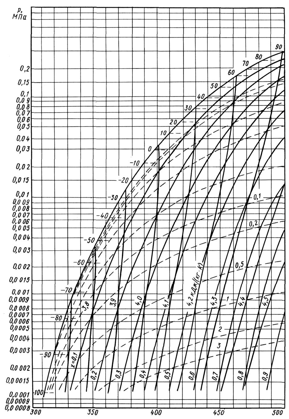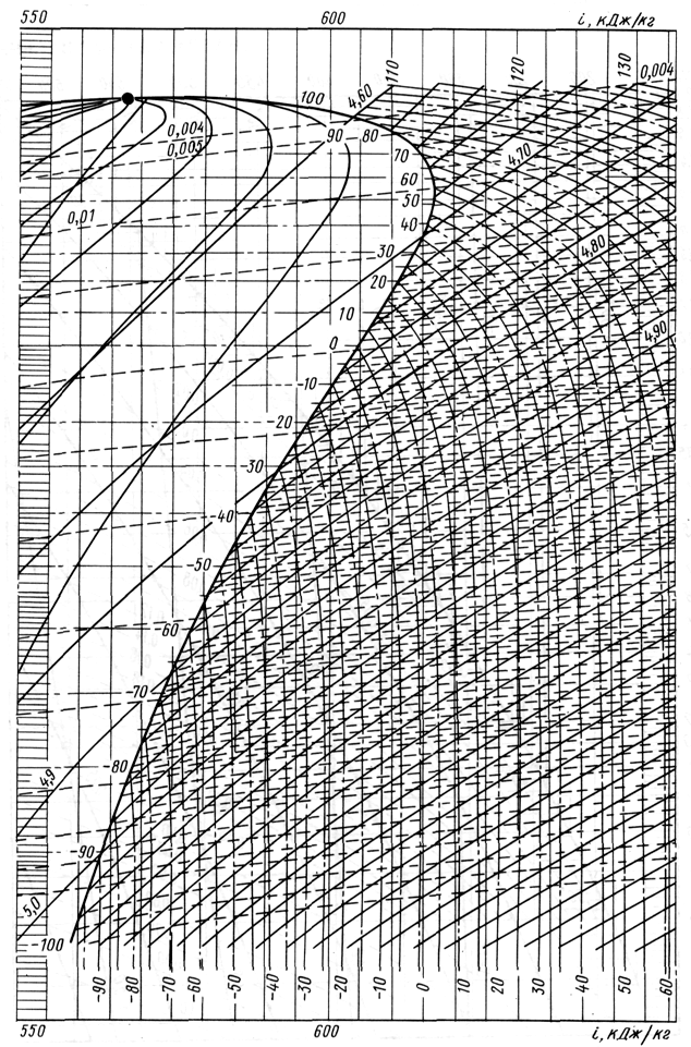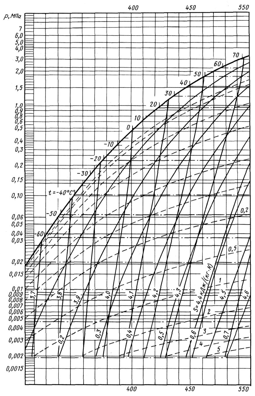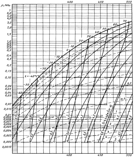 Для определения температуры хладагента в точках 5 и 1 задаются перегревом пара в электродвигателе, ориентировочно принимая его равным 10÷20ºС. Таким образом: t5 = tо + (15÷30) ºС; t1 = t5 + (10÷20) ºС.