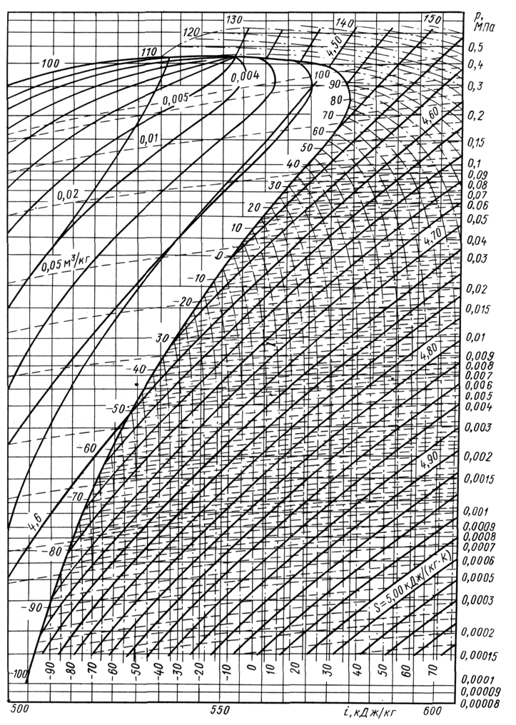 Параметры стандартного режима: tк = 30С, tо = 15С, tрв = 25С, tвс = 10С (для аммиака) или 20С (для фреонов).