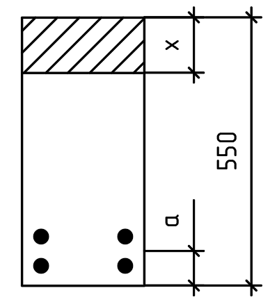 Требуемая площадь арматуры: As,tot = 2207 мм2. Принято 6 стержней ∅22 А500 (As = 2281 мм2). Процент армирования: μ = 2,5% ≤ 3%. Шаг поперечной арматуры S = 300 мм.
